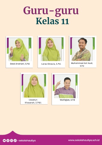 Guru-guru Kelas 11 Dewi Andriani, S.Pd. Laras Oktavia, S.Pd. Muhammad Azri Audi, S.Pd Uswatun Walfajian, S.Pd Khasanah, S.Pd.I.