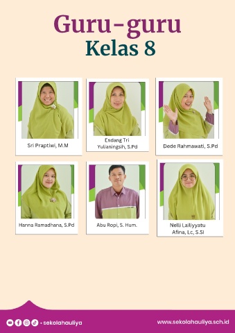 Guru-guru Kelas 8 Endang Tri Sri Praptiwi, M.M Yulianingsih, S.Pd Dede Rahmawati, S.Pd Hanna Ramadhana, S.Pd Abu Ropi, S. Hum. Nelli Lailiyyatu Afina, Lc, S.SI