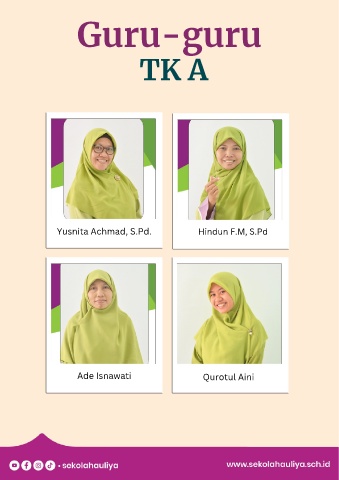 Guru-guru TK A Yusnita Achmad, S.Pd. Hindun F.M, S.Pd Ade Isnawati Qurotul Aini